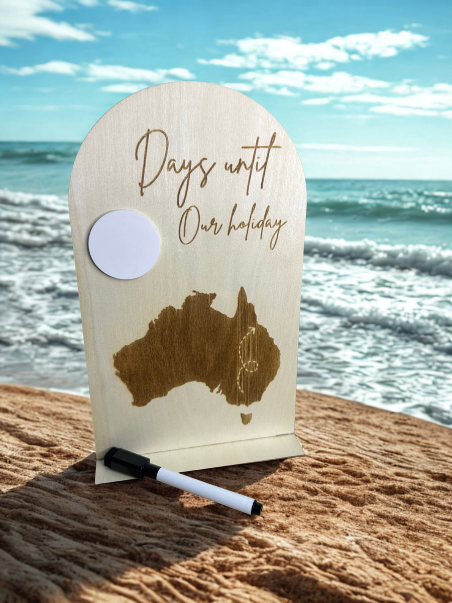 Countdown to your next adventure with our beautifully crafted Timber Holiday Countdown Plaques – available in three unique designs to suit every style of getaway. Whether you’re dreaming of snowy mountains, a Lap of Australia journey, or a tropical island escape, these plaques turn the anticipation of your trip into a daily moment of joy.